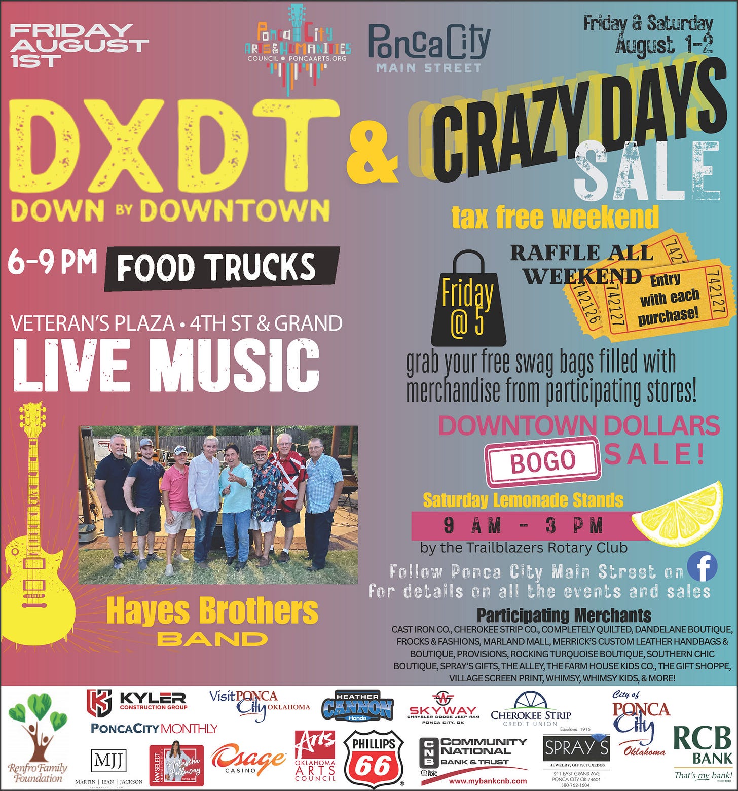🎉 Mark your calendars for the biggest weekend of summer in downtown Ponca City! 🎸🛍️