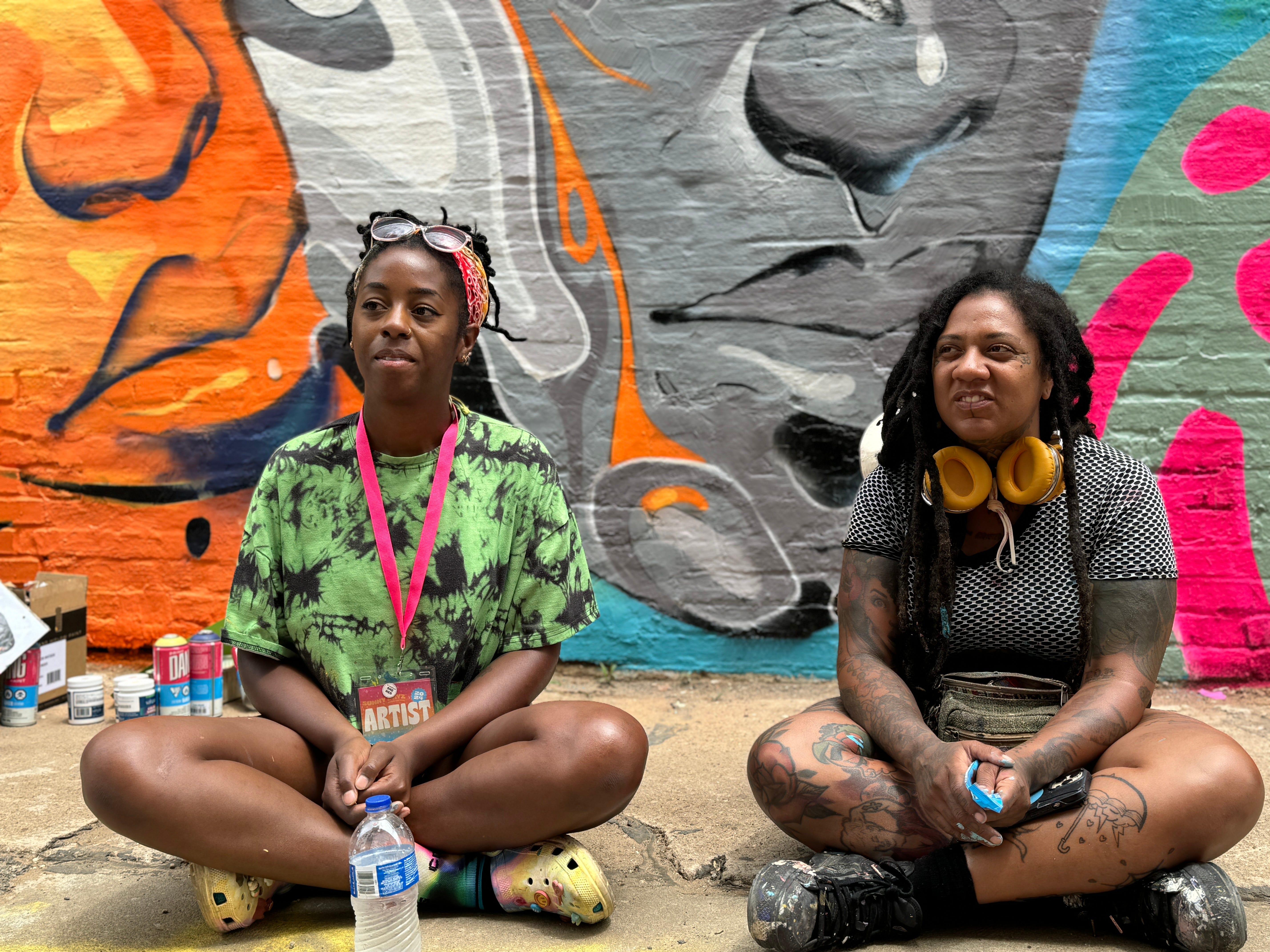 Curtia Wright (left) and Charity Hamidullah (right), Sunny Dayz Mural Festival Artists - May 29, 2024