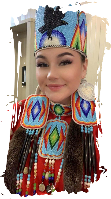 Thomas’ native name is “Kola∙Kax∙Aw,” which means Black Bird. Her dress in Milan, with its exotic black feathers, was a great fit for her heritage and personality. She expresses, “I hope my people follow dreams, keep believing and never give up.” One of the most valuable outcomes for her has been meeting people from other tribes, such as Canadian tribes. Sharing experiences and seeing the success of others is also a motivator.