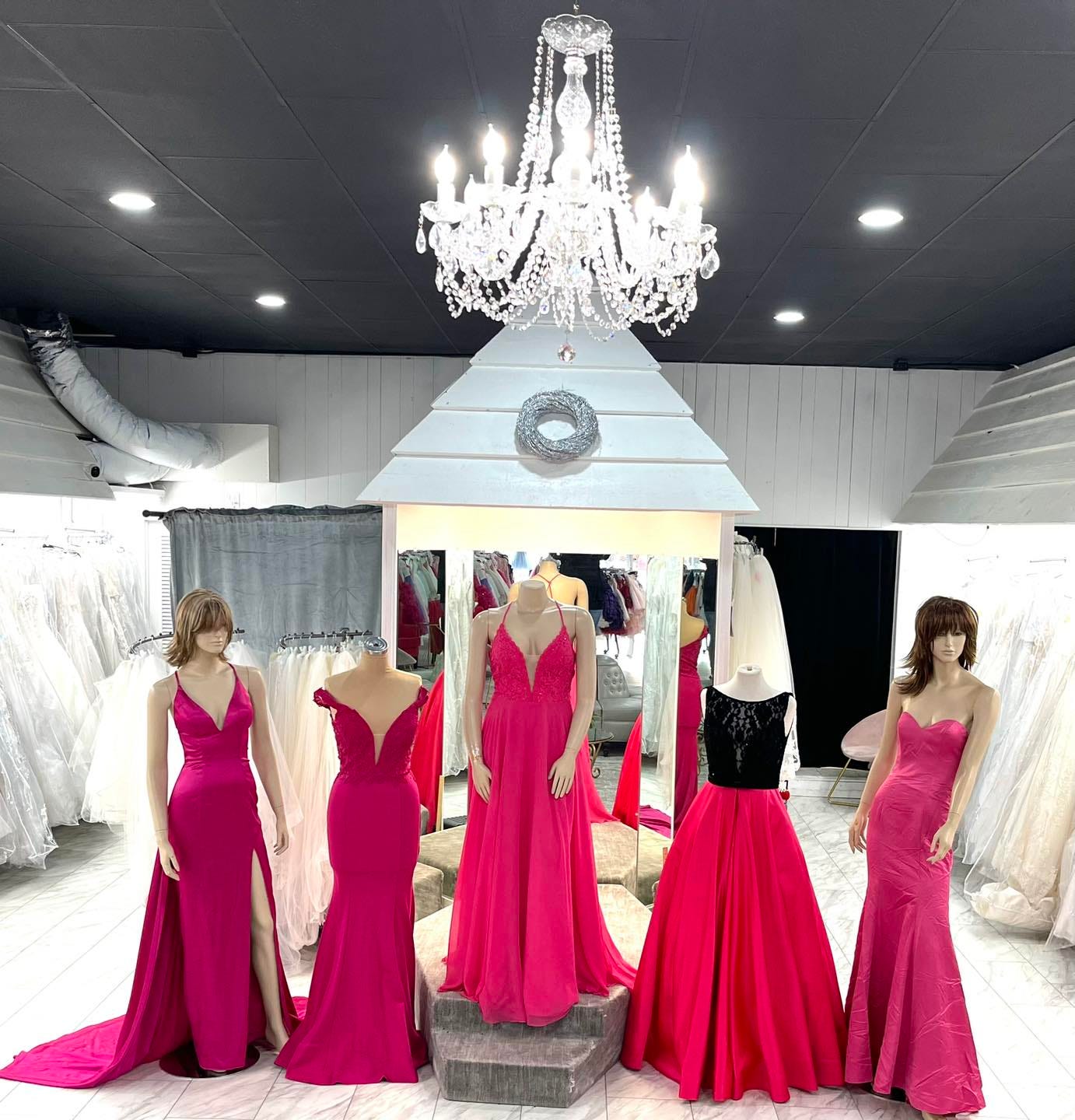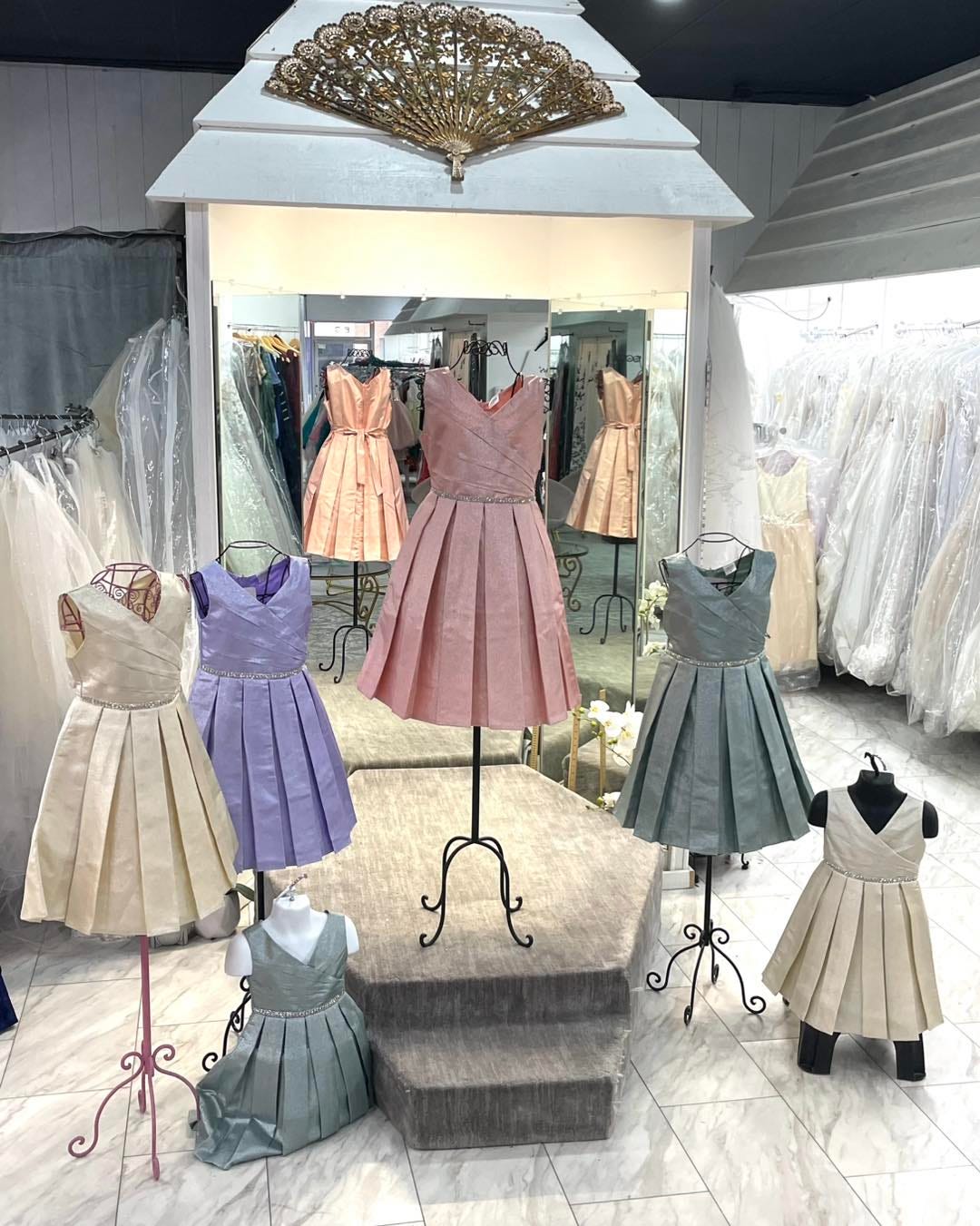 Frocks & Fashions stocks hundreds of dresses. They carry dresses for younger girls for Father/Daughter events held in our area, with around 600+ dresses in stock for such occasions. Roxane says helping little ones find the perfect dress is one of her favorite parts of her job. They love everything they try on and always have to practice their twirl in each dress.